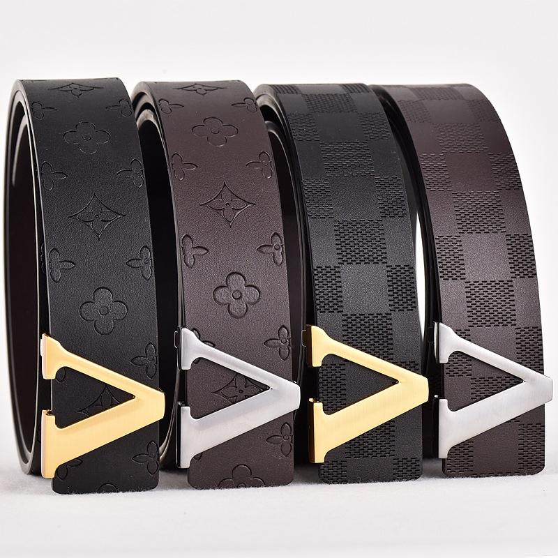 Gran oferta, hebilla de letra V de lujo, cinturón de cuero genuino de moda de piel de vaca en relieve Unisex
